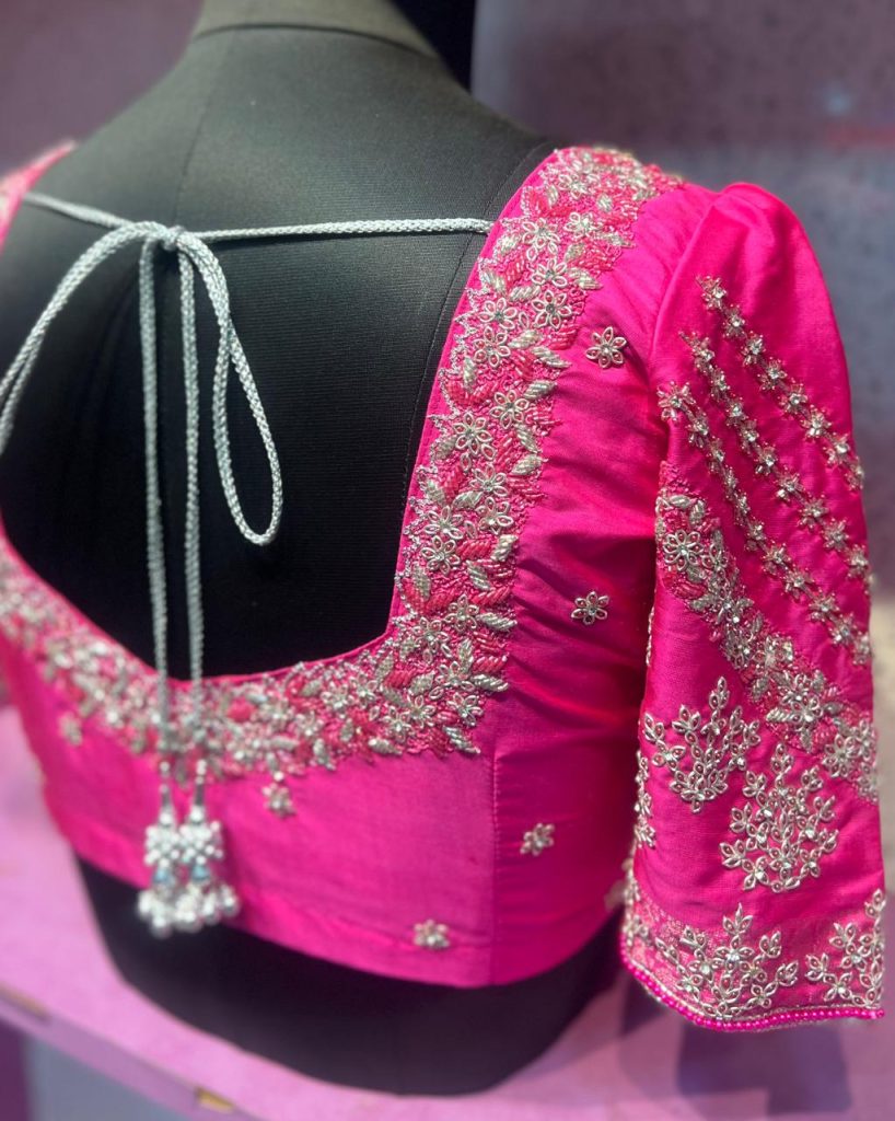 At Jessie Designers Studio, we specialize in Aari embroidery, designer and bridal blouses, bridal boutique wear, and custom lehengas. Our designs blend traditional craftsmanship with modern elegance to make every outfit uniquely yours.