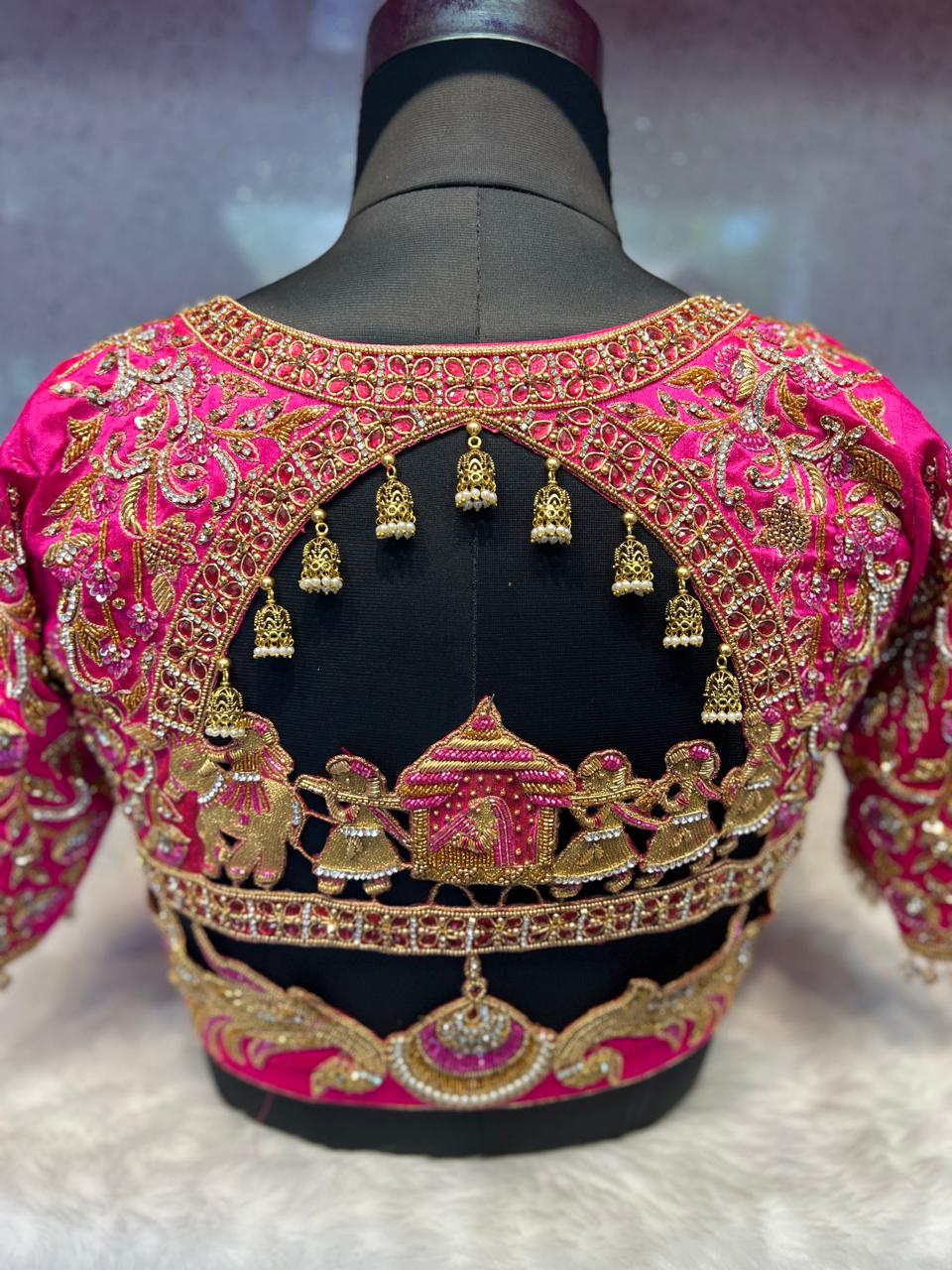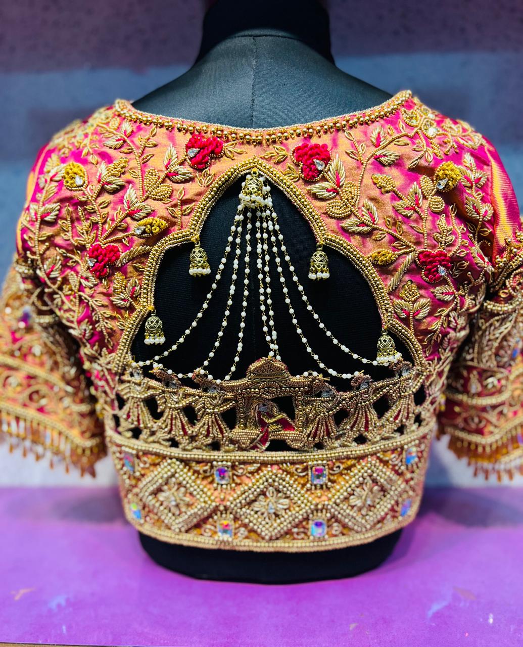 Exclusive bridal blouses crafted for your big day with detailed embellishments.